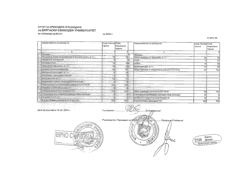 ОТЧЕТ ЗА ПРИХОДИТЕ И РАЗХОДИТЕ