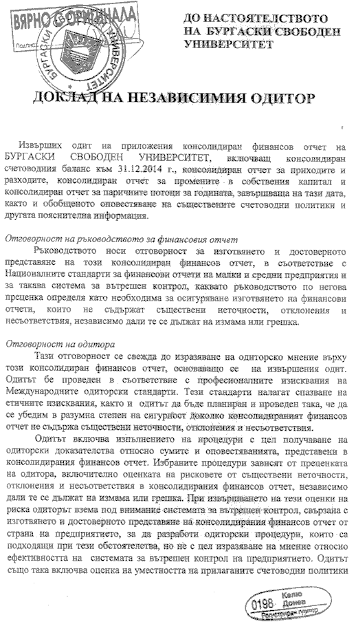 • КОНСОЛИДИРАН ОДИТОРСКИ ДОКЛАД