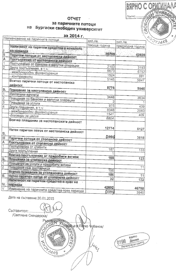 СПРАВКА ЗА ПАРИЧНИТЕ ПОТОЦИ ПО ПРЕКИЯ МЕТОД
