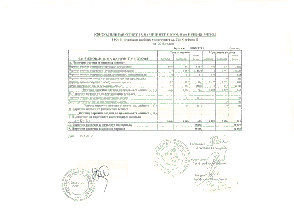 КОНСОЛИДИРАН ОТЧЕТ ЗА ПАРИЧНИТЕ ПОТОЦИ ПО ПРЕКИЯ МЕТОД