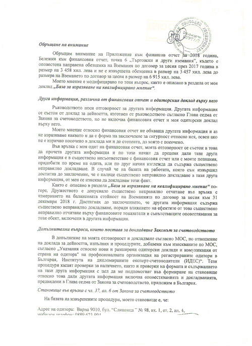 • ОДИТОРСКИ ДОКЛАД