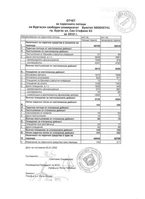 ОТЧЕТ ЗА ПАРИЧНИТЕ ПОТОЦИ