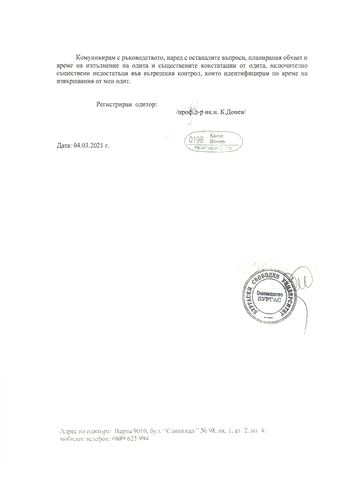 КОНСОЛИДИРАН ОДИТОРСКИ ДОКЛАД