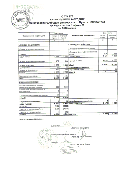 ОТЧЕТ ЗА ПРИХОДИТЕ И РАЗХОДИТЕ