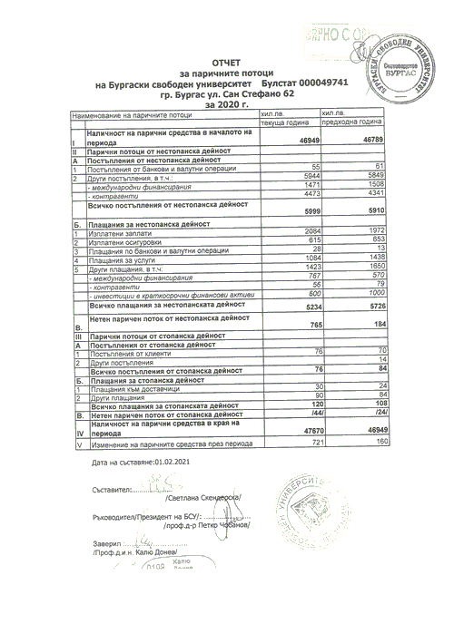 ОТЧЕТ ЗА ПАРИЧНИТЕ ПОТОЦИ