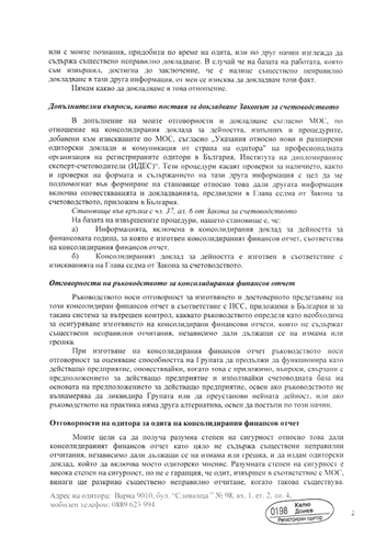 КОНСОЛИДИРАН ОДИТОРСКИ ДОКЛАД