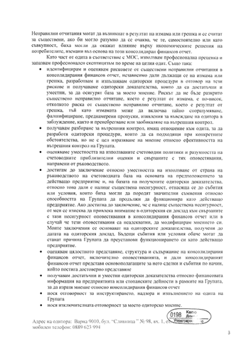 • КОНСОЛИДИРАН ОДИТОРСКИ ДОКЛАД