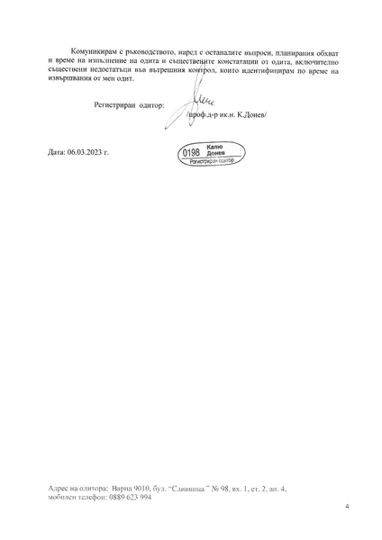КОНСОЛИДИРАН ОДИТОРСКИ ДОКЛАД