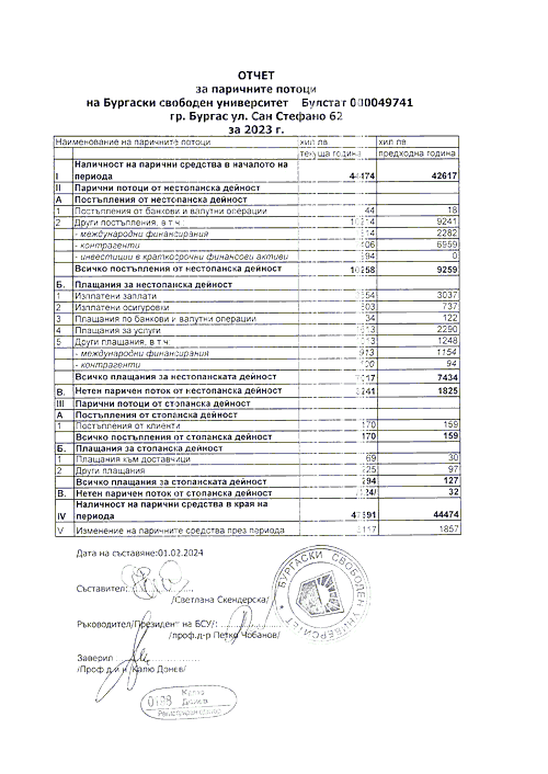 ОТЧЕТ ЗА ПАРИЧНИТЕ ПОТОЦИ