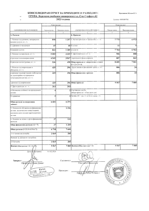 КОНСОЛИДИРАН ОТЧЕТ ЗА ПРИХОДИТЕ И РАЗХОДИТЕ