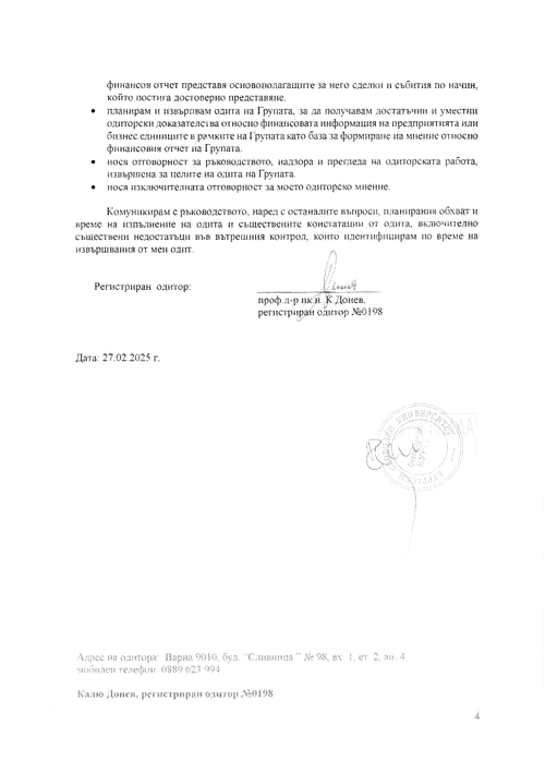 КОНСОЛИДИРАН ОДИТОРСКИ ДОКЛАД